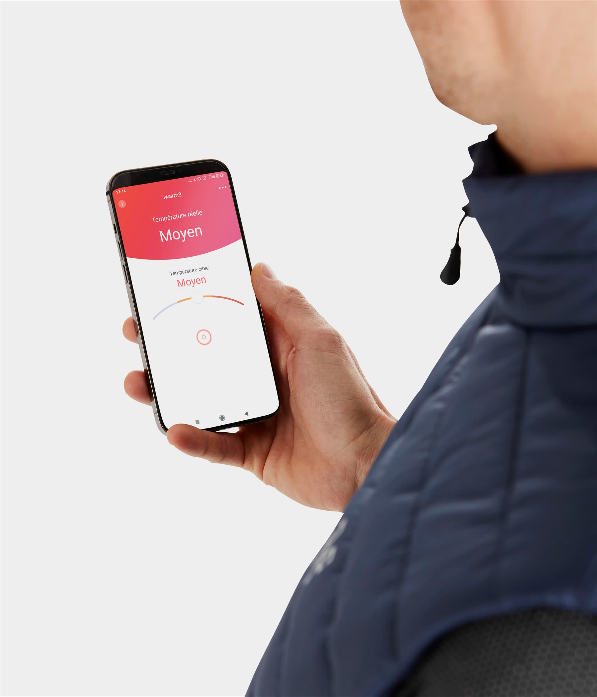 Dotée d'une technologie auto-chauffante intégrée dans la doublure, connectée à une batterie externe rechargeable, ce panneau textile en nanotube de carbone apporte de la chaleur suivant les besoins du cavalier. La technologie s'active via un bouton situé sur le côté de la veste. La température se module sur le bouton ou via l'application "iwarm3" téléchargeable sur smartphone. 3 niveaux de chaleur :