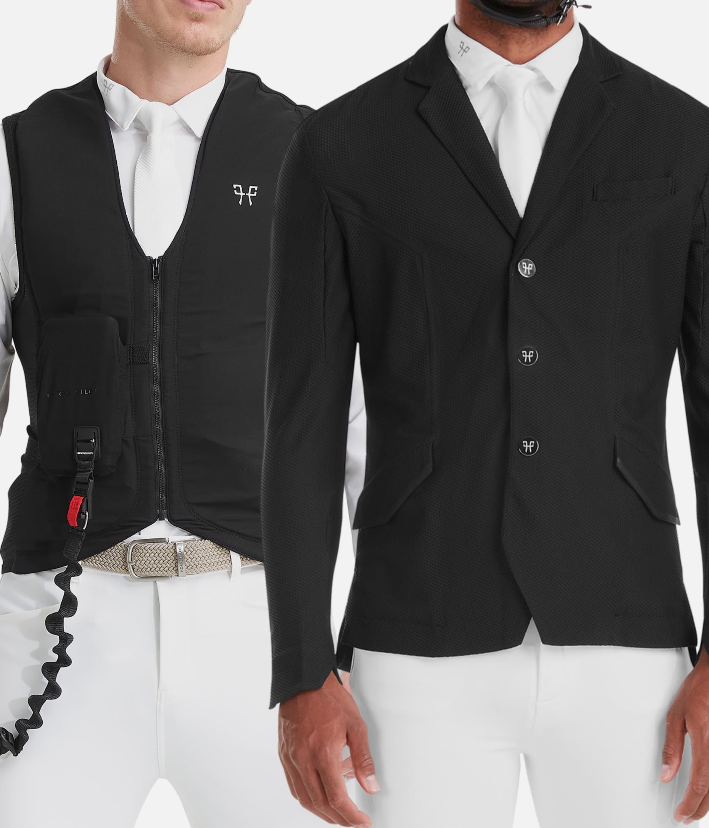 Pour tous les cavaliers, il est réellement important de porter un gilet airbag pour monter à cheval. Pour encourager le fait de porter cette protection, la marque Horse Pilot a créé une gamme de vestes d'équitation pour homme compatibles avec un airbag. Ceux-ci sont très fins, et paraissent alors invisibles sous la veste. C’est notamment le cas de la veste de concours Air Motion Protect, qui a été conçue pour être portée avec le gilet airbag In & Motion de la même marque. Ainsi, cela permet aux cavaliers de se sentir en sécurité tout en gardant l’élégance caractéristique d’une veste de concours d’équitation.