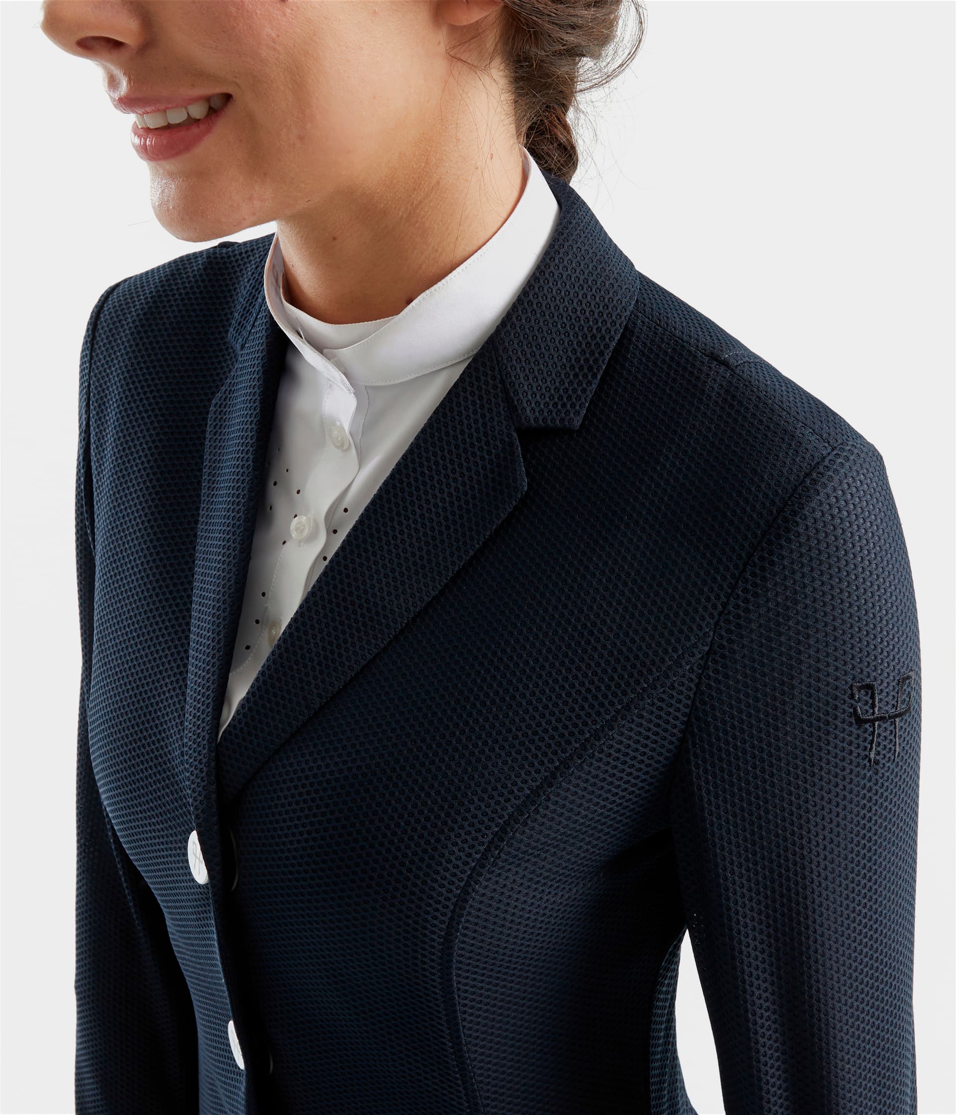 Une veste d'équitation pour femme qui rassemble tous les détails techniques nécessaires à la pratique de l’équitation durant un concours hippique. Conçue dans le même patronage, les nombreuses découpes ergonomiques permettent à la veste de s’adapter parfaitement aux gestes du cavalier.