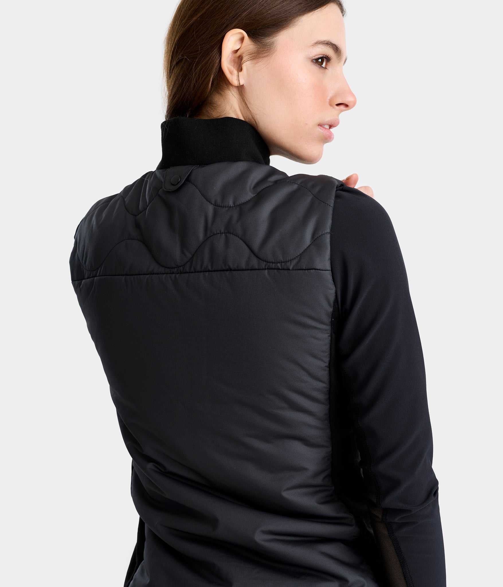 Eine umweltfreundliche, vielseitige, ärmellose Daunenjacke, die das ganze Jahr über getragen werden kann.