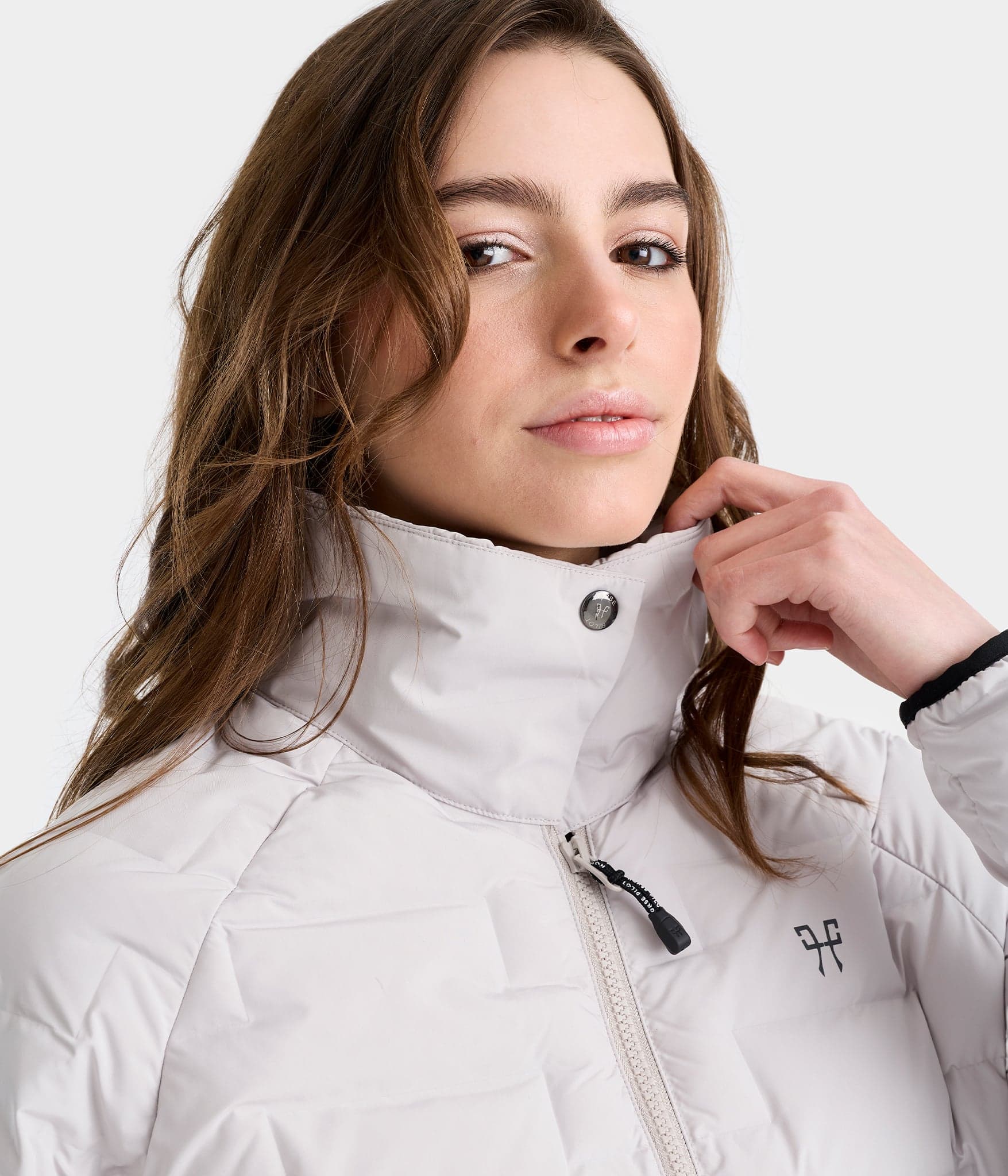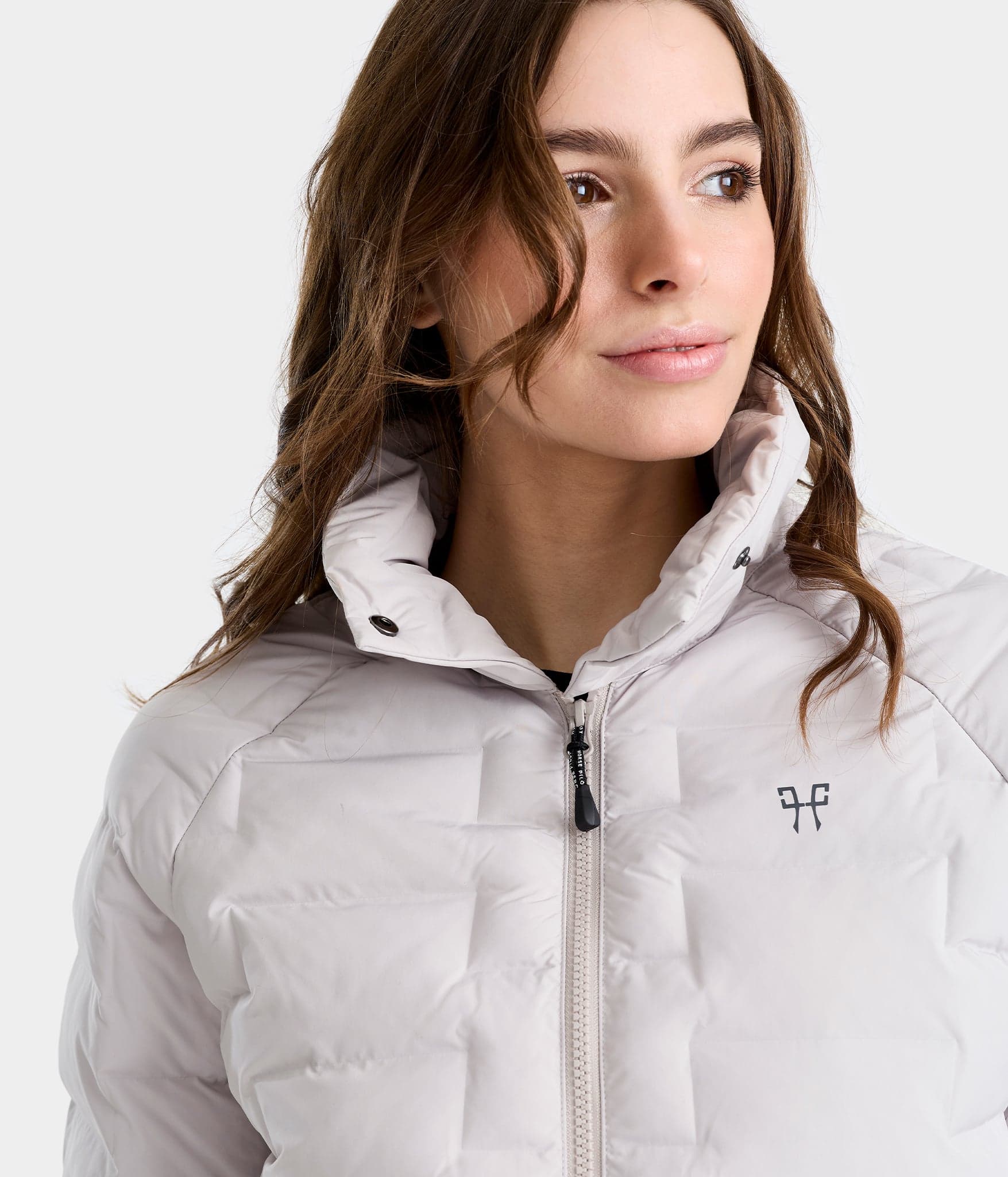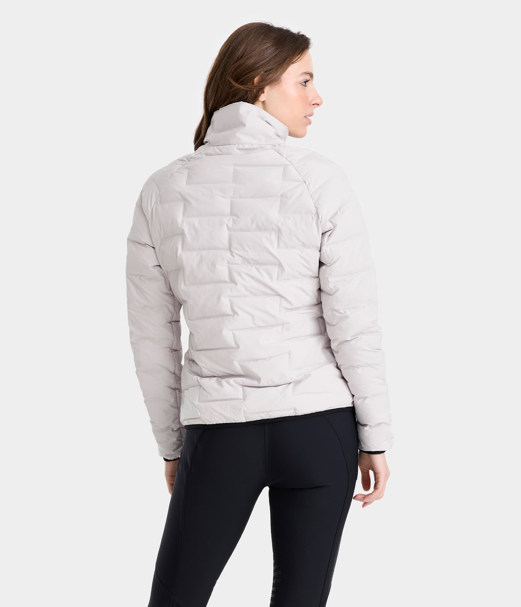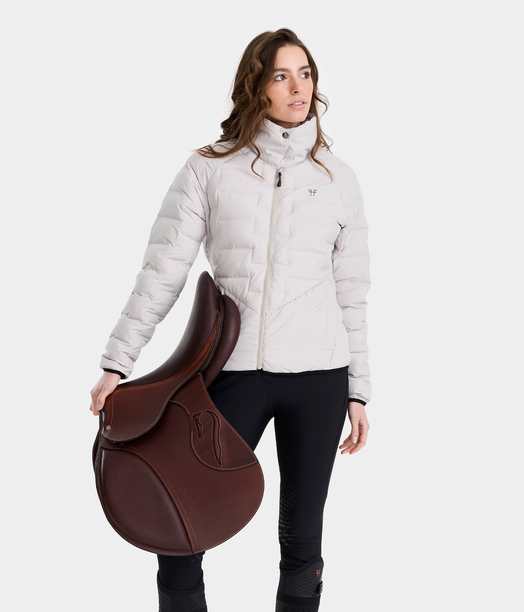 The raised collar closes with a snap to protect you from the cold. This compressible jacket slips easily into your bag for all your equestrian adventures.