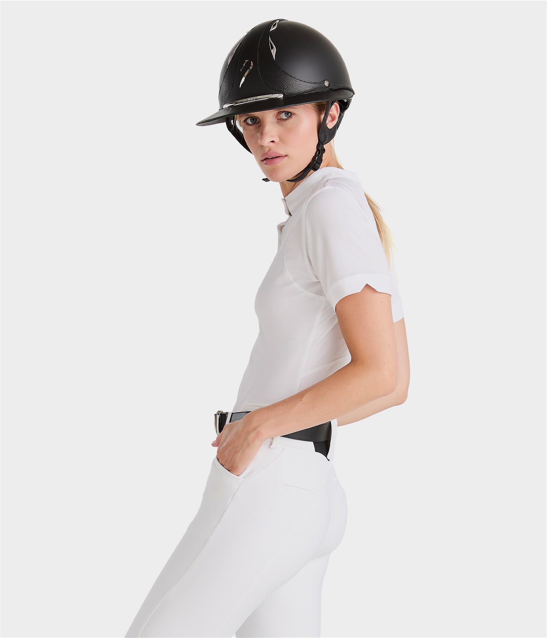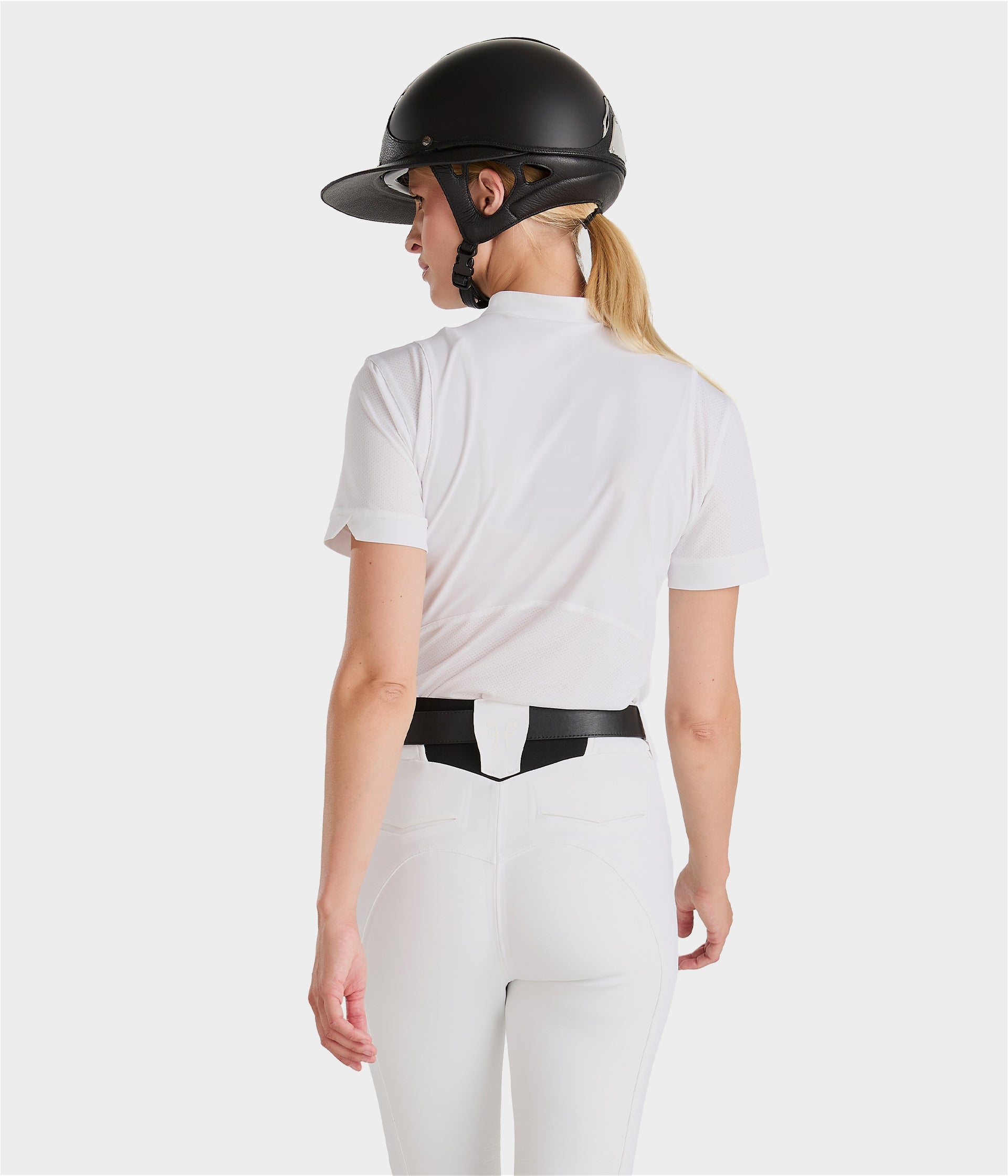 Bi-stretch and ergonomically cut, the Aerolight shirt is designed to offer the rider optimal freedom of movement. The collar is tailored to meet competition requirements and opens with a magnetic button for a minimalist look.