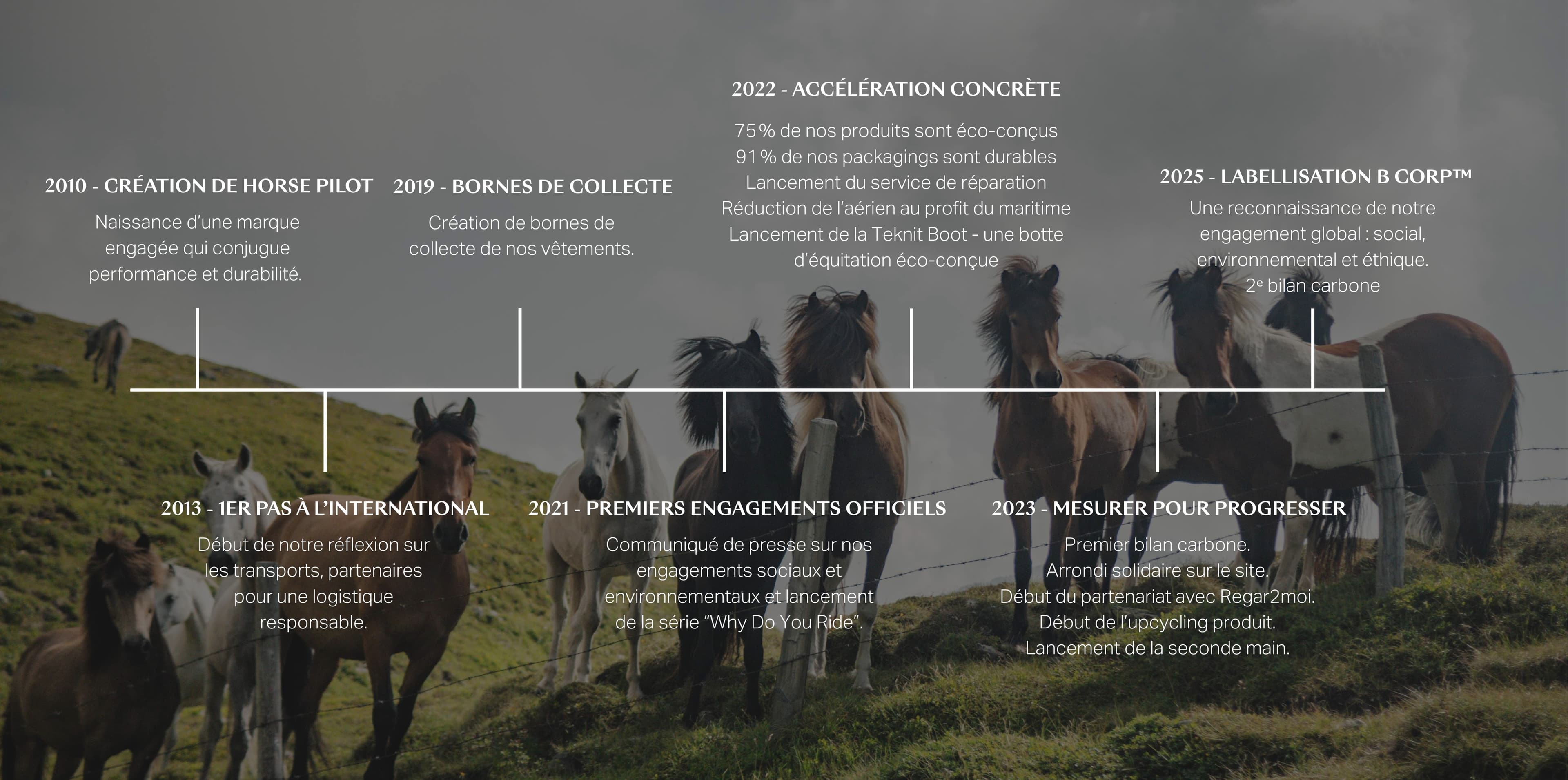 Avec B Corp™, nous avons la reconnaissance officielle que nos engagements sont réels et mesurés. Nous poursuivons la même ambition : produire des vêtements techniques performants, conçus pour les cavaliers exigeants, tout en réduisant notre impact environnemental et en respectant les femmes et les hommes qui nous accompagnent.